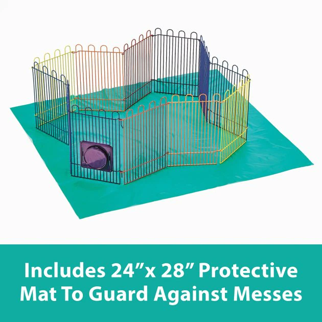 Keytee Critter Trail Small Animal Playpen makes an ideal play area for hamsters, gerbils and more. It features 12 colorful, connectable wire panels that are sturdy and attractive. And the included protective mat allows for worry-free use on any type of floor. Nine inches in height, it ensures your pet stays safely inside.