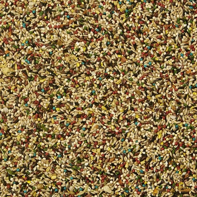 Canary Grass Seed, Millet, Niger Seed, Flax Seed, Steel Cut Oat Groats, Rape Seed, Hulled Sesame Seed, Hulled Sunflower, Ground Corn, Calcium Carbonate, Dehydrated Carrots, Caraway Seed, Ground Wheat, Fennel Seed, Lettuce Seed, Poppy Seed, Ground Rice, Dried Papaya, Corn Gluten Meal, Dehulled Soybean Meal, Wheat Middlings, Coconut, Dehydrated Apples, Anise Seed, Dehydrated Spinach, Dehydrated Parsley, Dicalcium Phosphate, Algae Meal (Source of Omega-3 DHA), Soy Oil, Salt, Dried Whole Egg, Dried Beet Pulp, Wheat Germ Meal, Fructooligosaccharide, L-Lysine, Dextrose, Brewers Dried Yeast, Sun-Cured Alfalfa Meal, Vitamin A Supplement, Choline Chloride, Yeast Extract, Riboflavin Supplement, Mixed Tocopherols (a Preservative), Dl-Methionine, Vitamin B12 Supplement, Vitamin E Supplement, Ferrous Sulfate, Manganous Oxide, Zinc Oxide, Rosemary Extract, Citric Acid, Orange Oil, Niacin, Menadione Sodium Bisulfite Complex (Source of Vitamin K Activity), Copper Sulfate, Cholecalciferol (Source of Vitamin D3), Calcium Pantothenate, Pyridoxine Hydrochloride, Thiamine Mononitrate, Canthaxanthin, Folic Acid, Calcium Iodate, Cobalt Carbonate, Biotin, Dried Bacillus Licheniformis Fermentation Product, Dried Bacillus Subtilis Fermentation Product, Beta-Carotene, Sodium Selenite, Artificial Color.