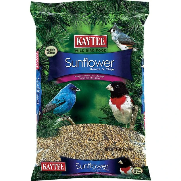 Kaytee Sunflower Hearts & Chips Wild Bird Food delivers quality nutrition to your feathered friends while encouraging them to flock to your yard. The hulls have been removed, making the seeds easier to eat. This helps to eliminate mess, and also prevents fallen seeds from germinating and growing in your yard. Since there are no hulls, this mix is completely edible and ideal for year-round feeding for your birdie pals.