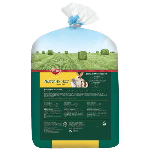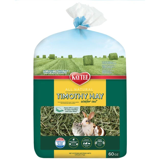 Give your pet timothy hay the same high quality as long strand but with less mess with Kaytee Timothy Hay Wafer-Cut Small Animal Food. Small pets including Guinea Pigs, rabbits and chinchillas need hay to aid in the digestion process, keep their teeth trim and satisfy their need to chew. In fact, hay should make up 75 percent of their daily diet. Kaytee Timothy Hay Wafer-Cut Small Animal Food is natural, chemical free, sun-cured timothy hay that is cut into a unique wafter shape with shorter strands for easier peel off and less mess. Offer several times a day as a treat in addition to their regular hay supply.