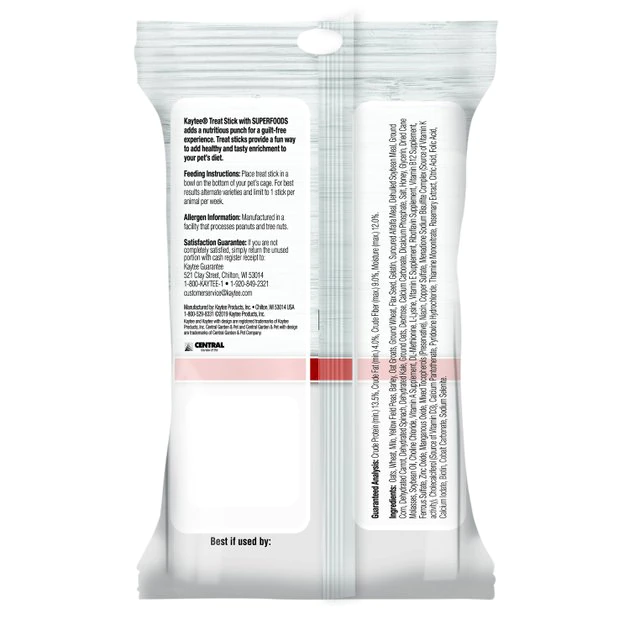 Reward your furry friend with a nutritious snack with Kaytee Treat Stick with Superfoods Spinach & Kale Flavor Guinea Pig Treats. They feature healthy and tasty ingredients to enrich your paw-tner’s diet with a spinach and kale superfood topping for added flavor. These guilt-free treats also come in stick form, so they are easy for your little one to snack on. Kaytee Treat Stick with Superfoods Spinach & Kale Flavor Treats are ideal for guinea pigs, rabbits, hamsters and other small animals.